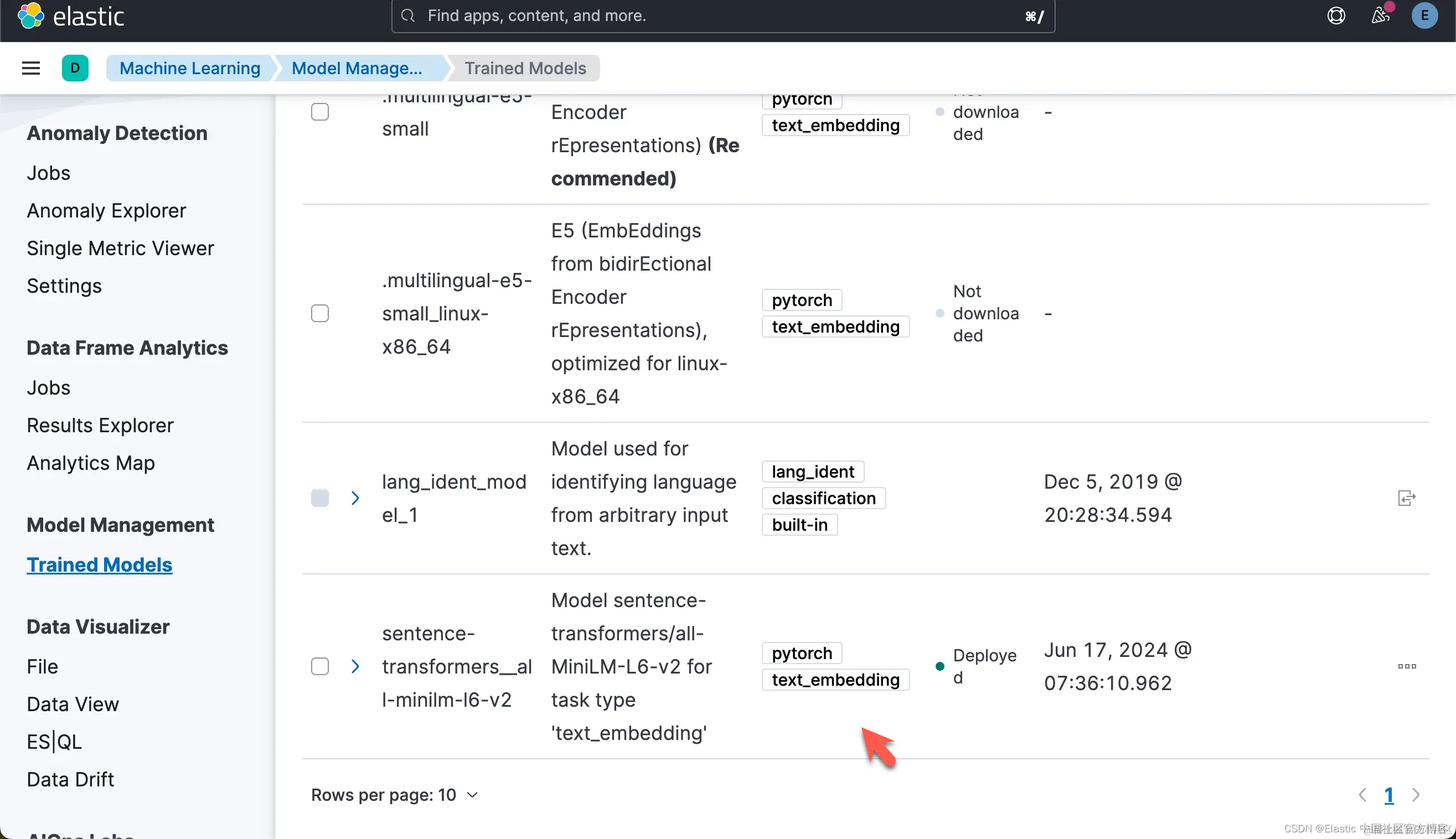 在这里,我们用到脚本来上传所需要的模型。使用 eland_import_hub_model 脚本,下载并安装 all-MiniLM-L6-v2 转换器模型。将 NLP --task-type 设置为 text_embedding。