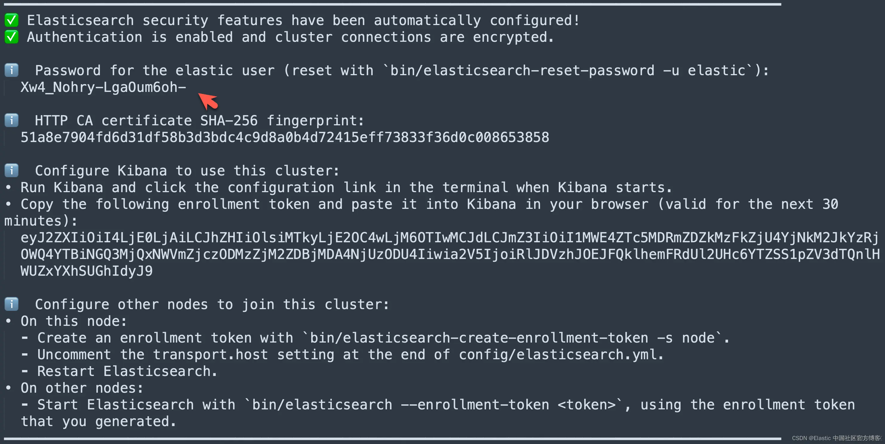 我们需要记下 Elasticsearch 超级用户 elastic 的密码。