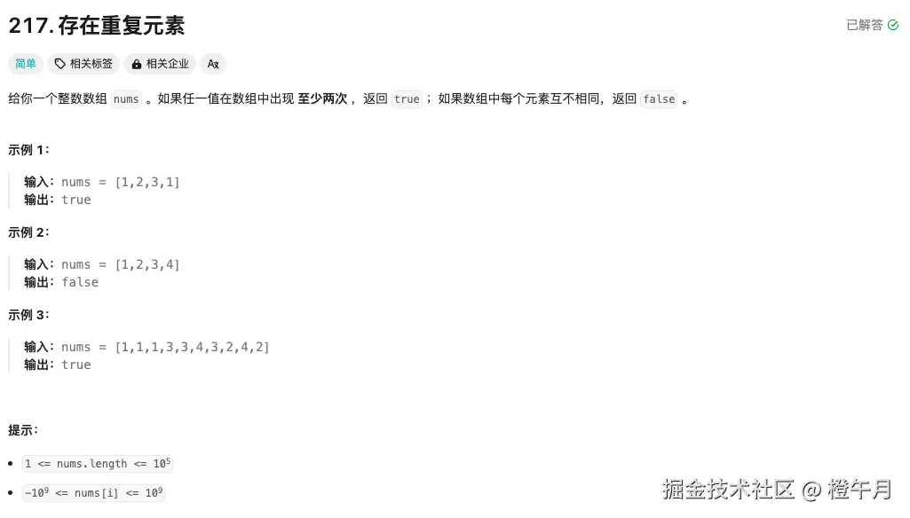 Problem: 217. 存在重复元素