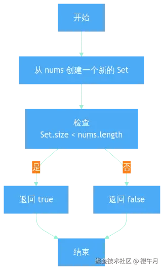 nums数组传递给Set,这会自动去除数组中的重复元素。 - 检查大小