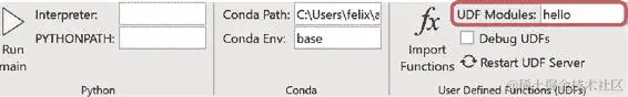在 macOS 上,由于缺少关于用户定义函数和 Conda 的部分,功能区看起来有些不同:虽然 macOS 不支持用户定义函数,但 Conda 环境不需要特殊处理,即被配置为 Python 组下的 Interpreter。