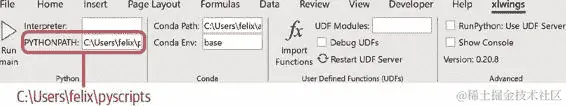 接下来,xlwings 将在 Excel 工作簿所在目录中查找一个名为 xlwings.conf 的文件。