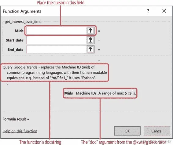 如果你需要更多控制如何调用你的 Python 代码,可以使用 VBA 函数RunPython。因此,RunPython要求你的工作簿保存为启用宏的工作簿。