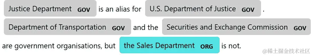 现在,当我们调用nlp时,这些组织将自动用新类型GOV标记: