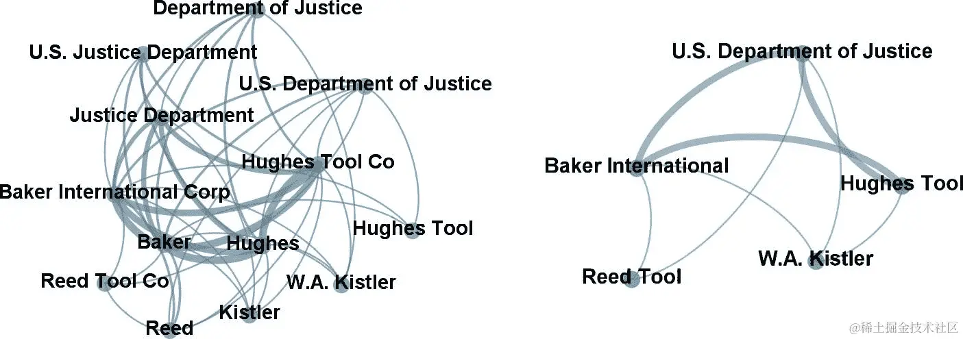 简化不同实体提及到单一名称的解析的一种方法是规范化或标准化提及。在这里,我们将进行第一次规范化,这通常是有帮助的:移除不具体的后缀和前缀。看看这个例子: