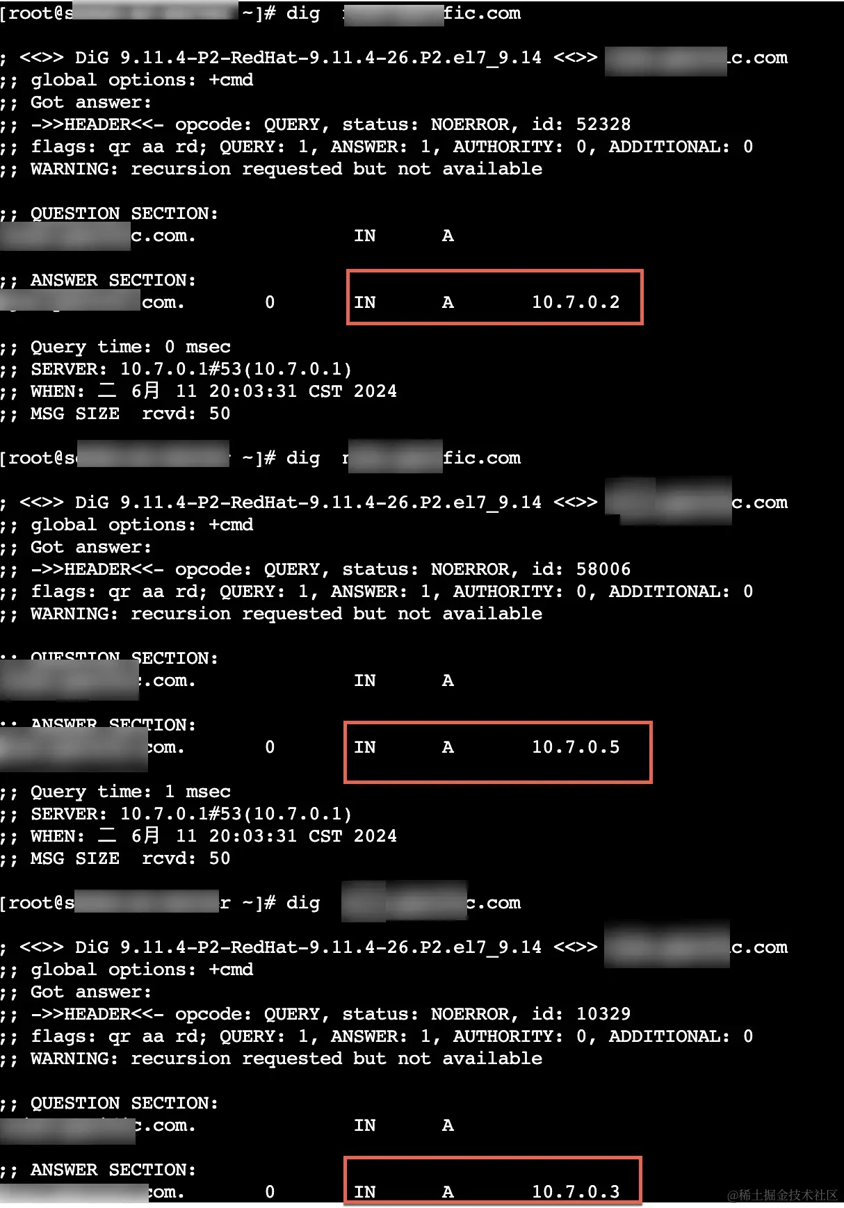 修改后再次从 10.7.0.46 访问 DNS 服务, 一切恢复正常: