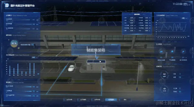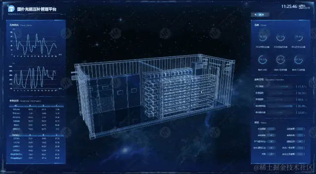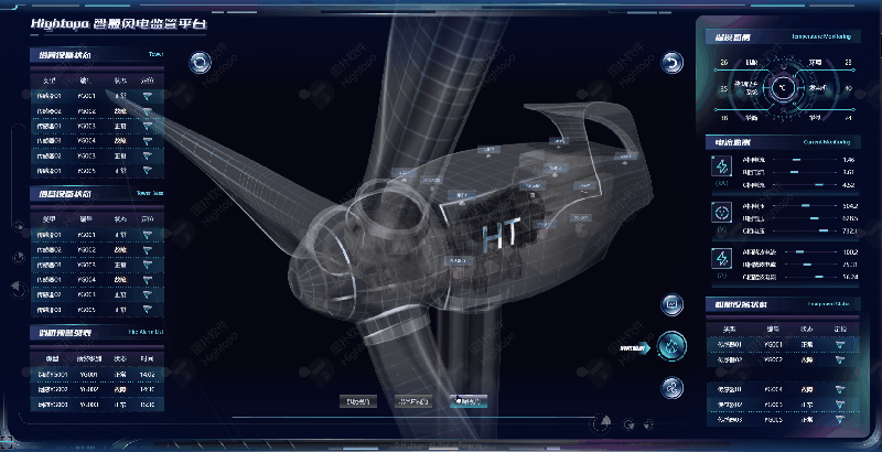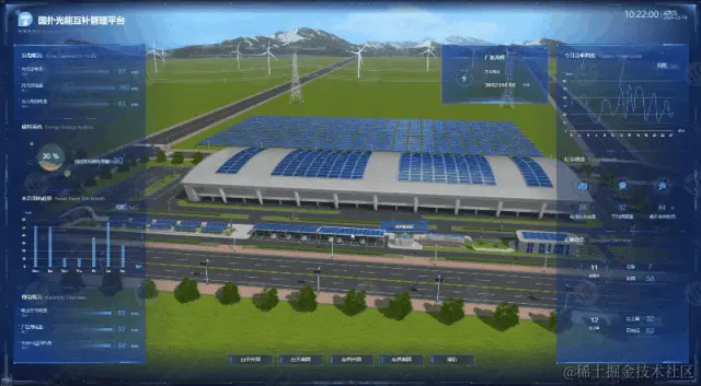 图扑利用自研产品 HT for Web 搭建风光储园区可视化监控系统,整合风力发电、光伏发电和储能系统,实现了能源的多元化生产和储备,提高了能源利用效率,增强了电网的稳定性和可靠性。在这一体系中,风电、光伏和储能各自扮演着重要的角色,并且相辅相成。