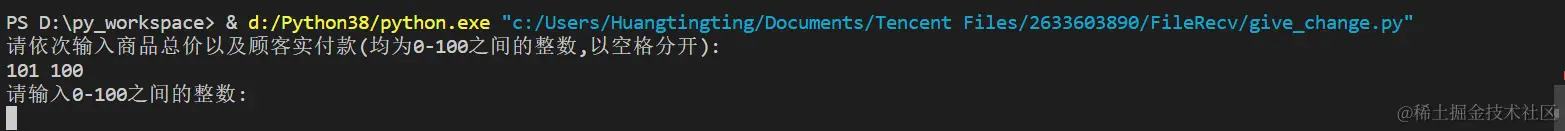 print('请依次输入商品总价以及顾客实付款(均为0-100之间的整数,以空格分开): ')