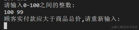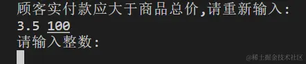 print('顾客实付款应大于商品总价,请重新输入: ')