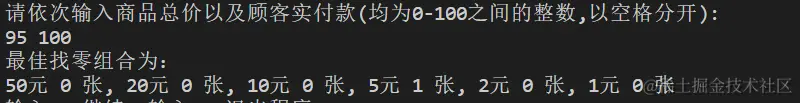 print('最佳找零组合为:')