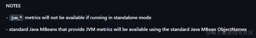 说明:官方强烈建议使用Java Agent方式运行,并且使用独立进程运行的话,- jvm_* 将不可用。