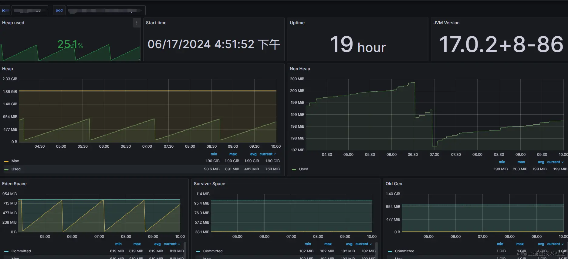 然而,我们希望能够实时查看JVM内存的实际使用情况。为此,我们需要让容器暴露相关的JVM监控指标,并将这些指标接入Prometheus,再通过Grafana进行展示。这样可以更精确地监控Java应用的内存使用情况,并根据实际情况进行优化和调整。
