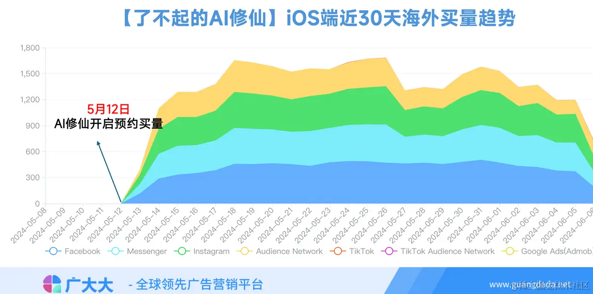 星邦互娱旗下仙侠题材放置ARPG手游【了不起的AI修仙】主打AI概念,从游戏ICON到游戏内人物、场景等美术内容均有大量AI参与痕迹,游戏的宣传标语也是围绕着“AI女仆、首创AI手游”等概念进行宣传。【了不起的AI修仙】目前还处于预约投放阶段,游戏将于2024年10月26日正式上线。根据广大大-广告主分析功能, 【了不起的AI修仙】5月累计去重投放预约素材接近1.3万条,累计投放素材26天,其中iOS端具体投放情况如下: