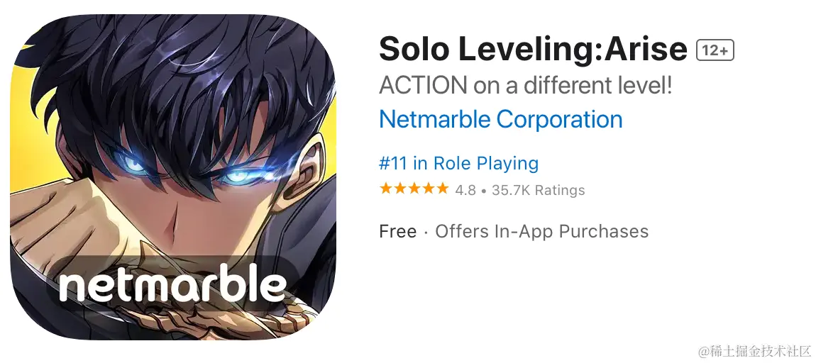 韩国Netmarble旗下二次元IP改编手游【Solo Leveling:Arise(我独自升级)】于5月7日上线,得益于原作小说的强大名气、与优良的改编动画的带动宣传,【Solo Leveling:Arise】上线当月(5月)单端收入总计2770万美元。