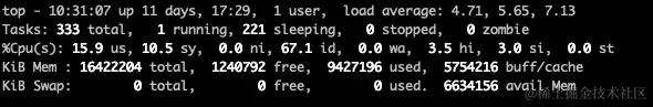 表示系统在 1 分钟、5 分钟和 15 分钟内的平均负载。一般认为负载与 CPU 核数相当即可。