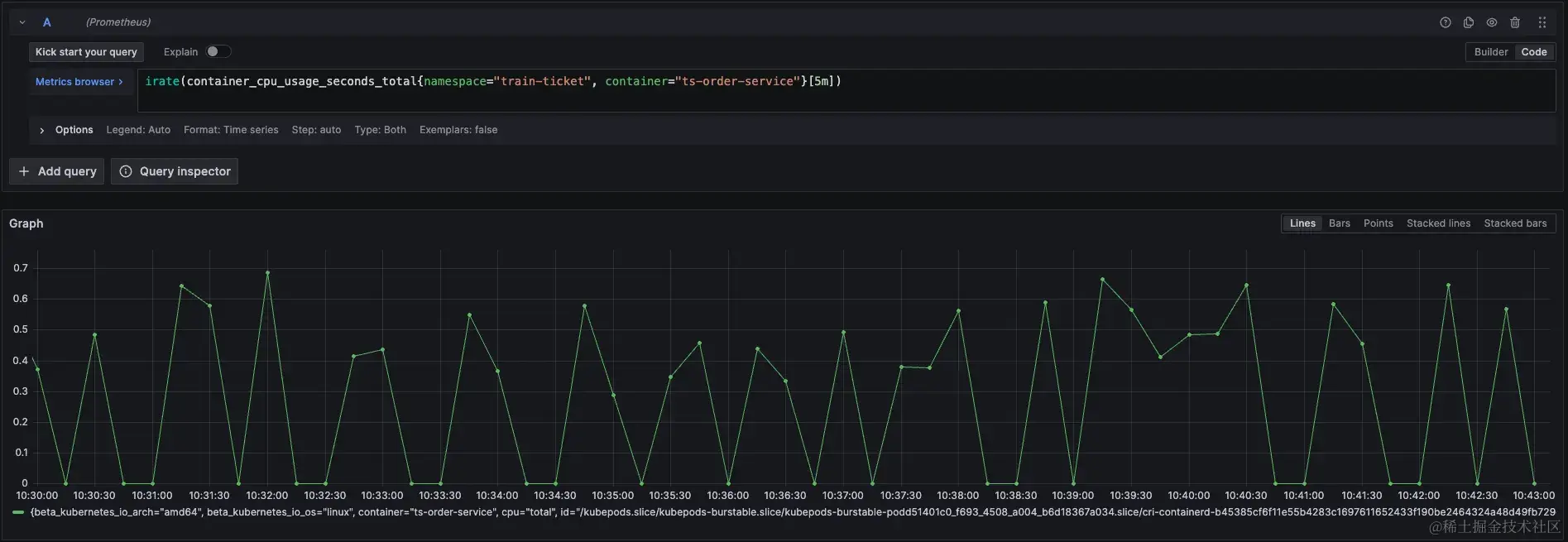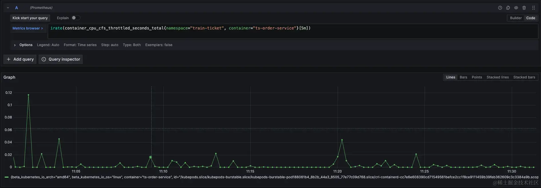当对order-service的limit增加之后,再看节流指标,此时节流已经很少发生了。