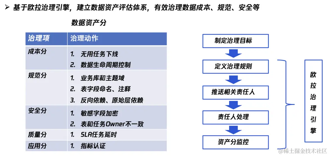在资产运营部分,通过对成本、规范使用等建立量化机制,形成一套数据资产分,以实现对整个数据资产的持续运营。