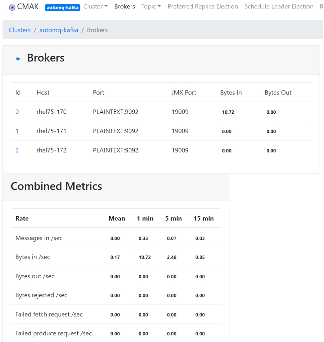 当我们使用一个软件的时候,经常都会问这个软件怎么监控、监控他的哪些指标?Kafka 的监控挺长时间都是一个老大难的问题,社区在监控方面一直没有投入太大的精力。如果要实现一个全面的 Kafka 监控框架,至少应该囊括 Kafka 所在主机资源、JVM(毕竟 Kafka 的 Broker 就是一个 Java 进程)、Kafka 集群本身等的监控,监控 Kafka 集群时还需要关注其客户端程序的性能。本文关注的重点在于 Kafka 和 AutoMQ 集群的监控,对于主机监控和 JVM 监控大家应该已经非常熟悉了。为了更好的说明,先对所涉及的验证环境进行简要介绍,其中包含依赖组件 ZooKeeper、Kafka/AutoMQ 集群自身、CMAK 监控服务。