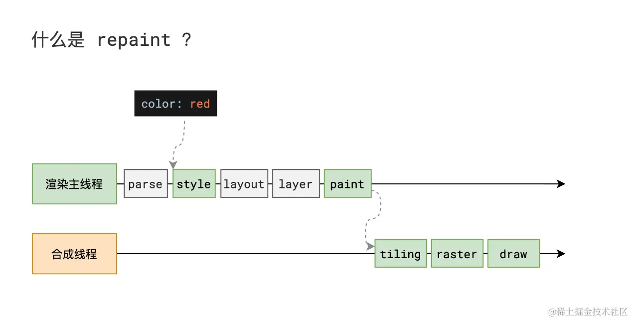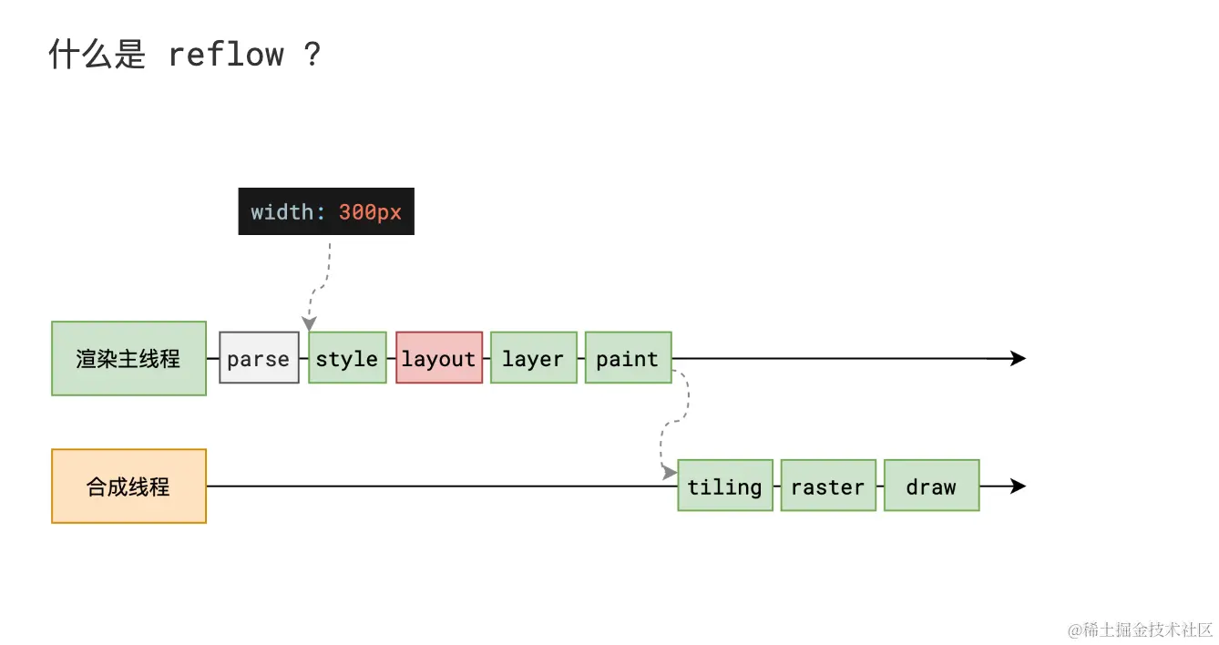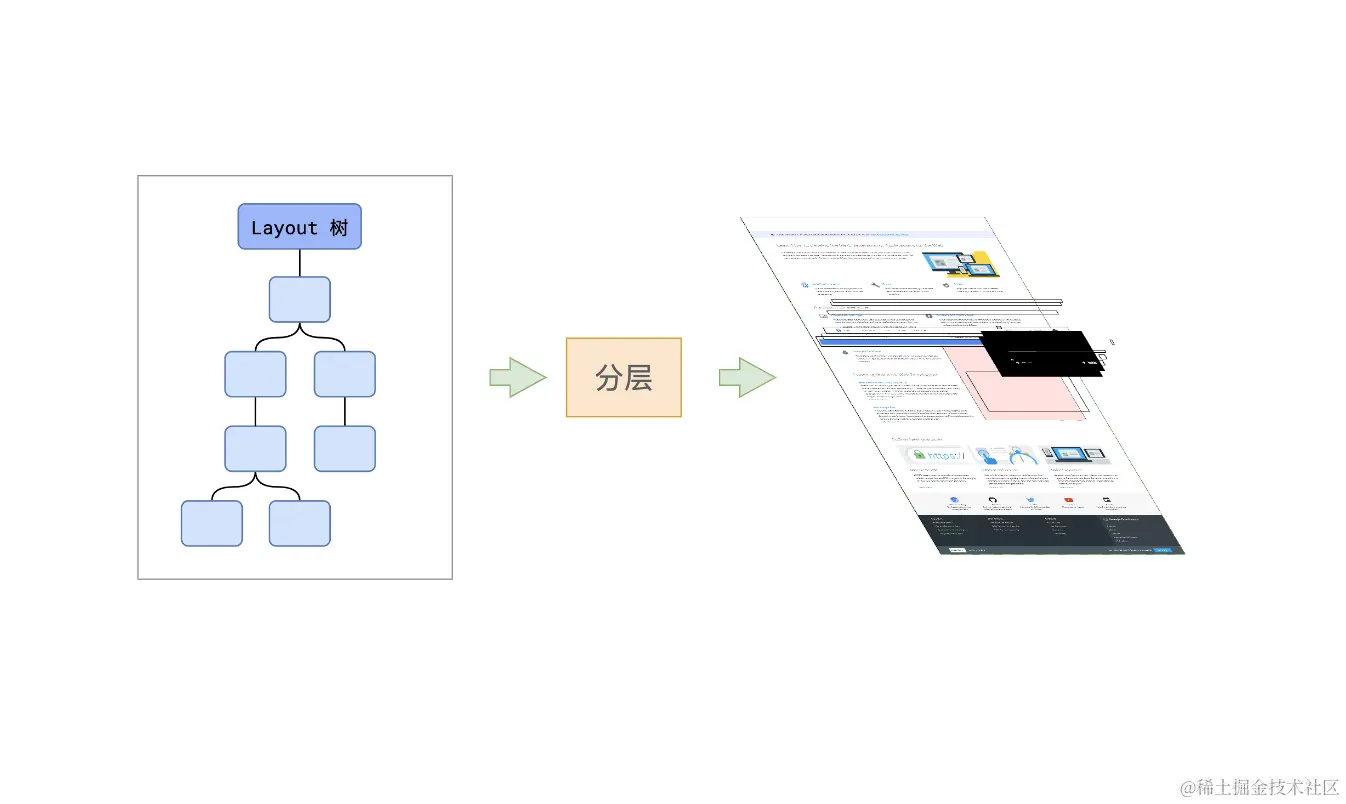 滚动条、堆叠上下文、transform、opacity 等样式都会或多或少的影响分层结果,也可以通过 **will-change**属性更大程度的影响分层结果。