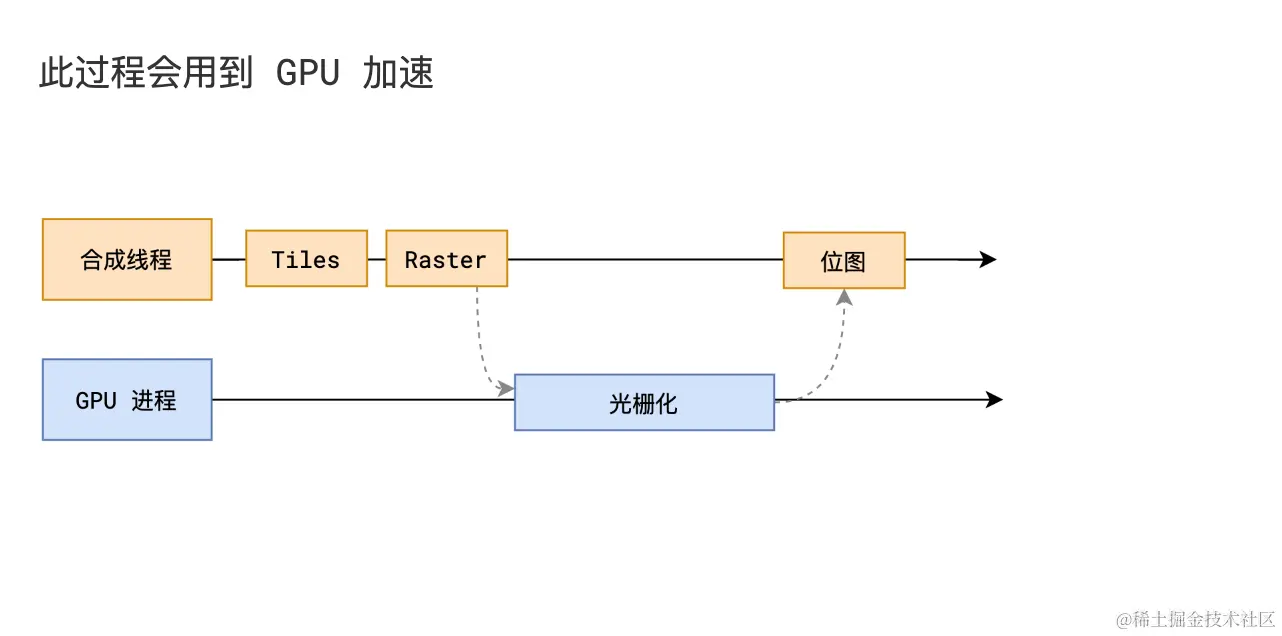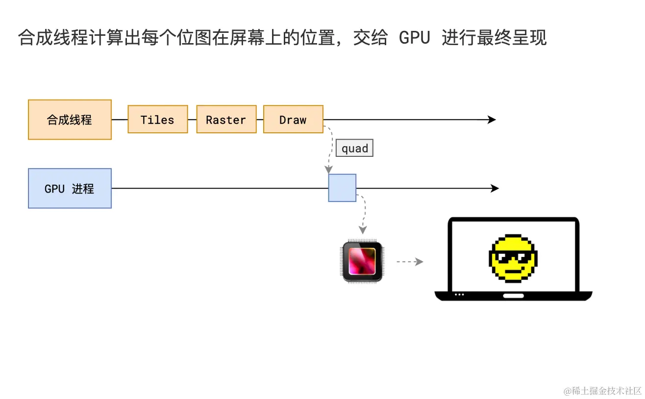 合成线程会将块信息交给 GPU 进程,以极高的速度完成光栅化。