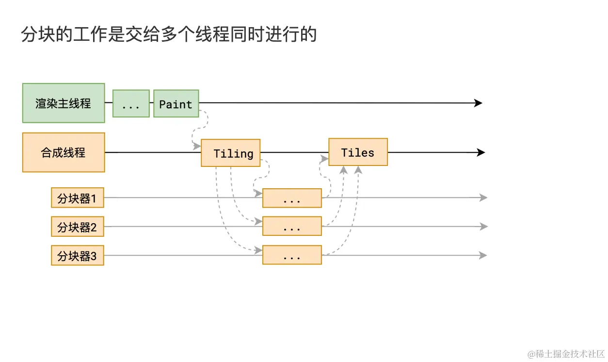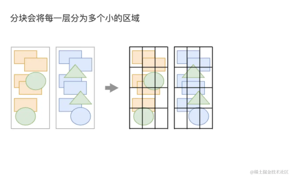 合成线程首先对每个图层进行分块,将其划分为更多的小区域。