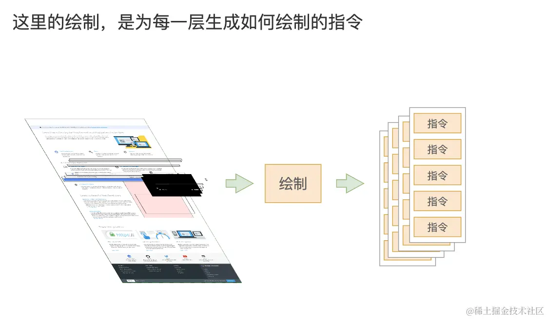 主线程会为每个层单独产生绘制指令集,用于描述这一层的内容该如何画出来。包含每个节点的绘制信息,如颜色、边框、阴影等。