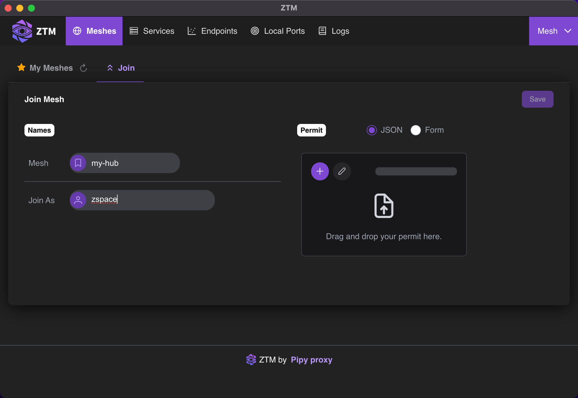 ztm join my-hub --as macbook --permit macbook.json