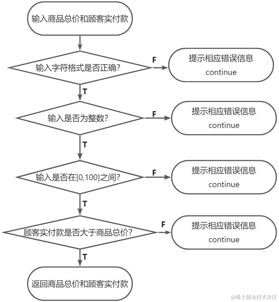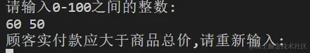 print('顾客实付款应大于商品总价,请重新输入: ')
