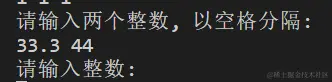 | 4 | 33.3 44.4 | 提示错误信息:'请输入整数: ' |