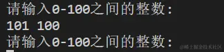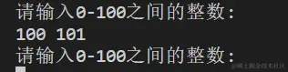 | 5 | 101 101 | 提示错误信息:'请输入0-100之间的整数: ' |