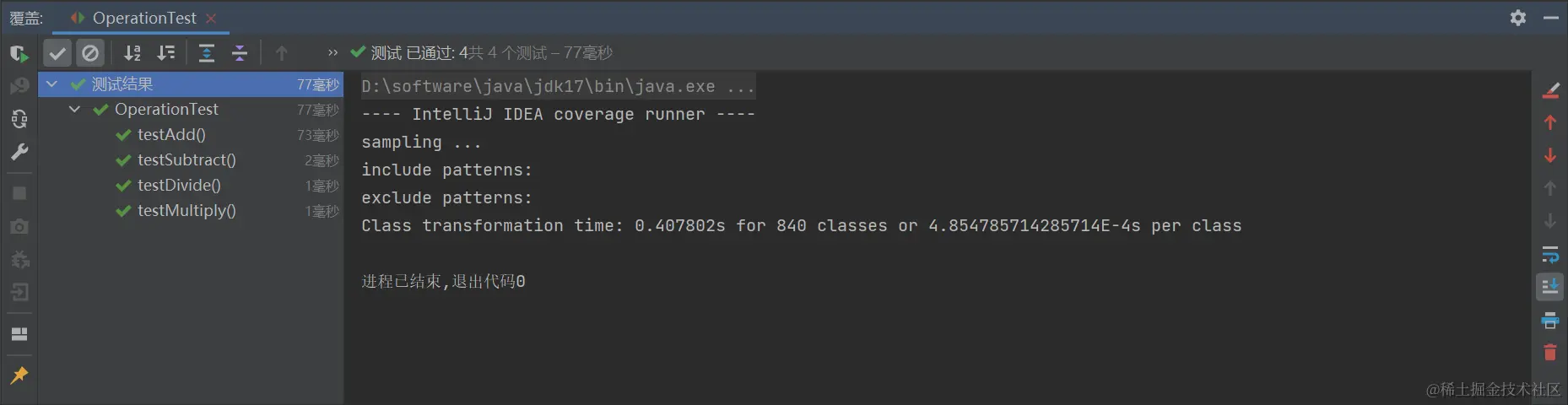 经过单元测试,所有测试用例都成功通过,四则运算方法能够正确计算不同类型的输入。同时,divide方法在除数为0时也能够得出Infinity,符合预期。因此,四则运算方法的功能正常,通过了单元测试。
