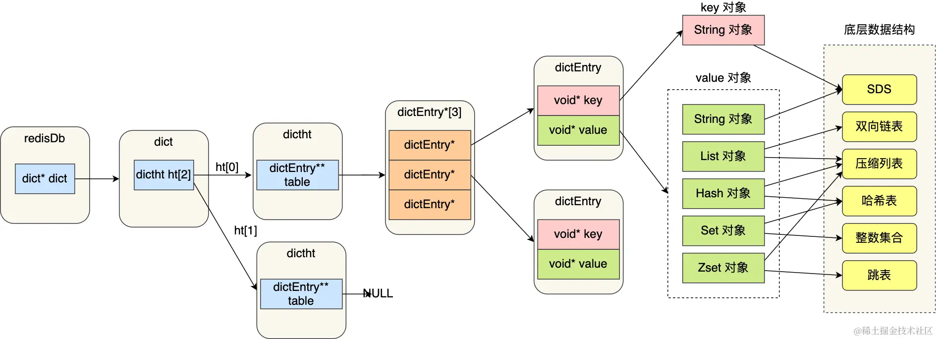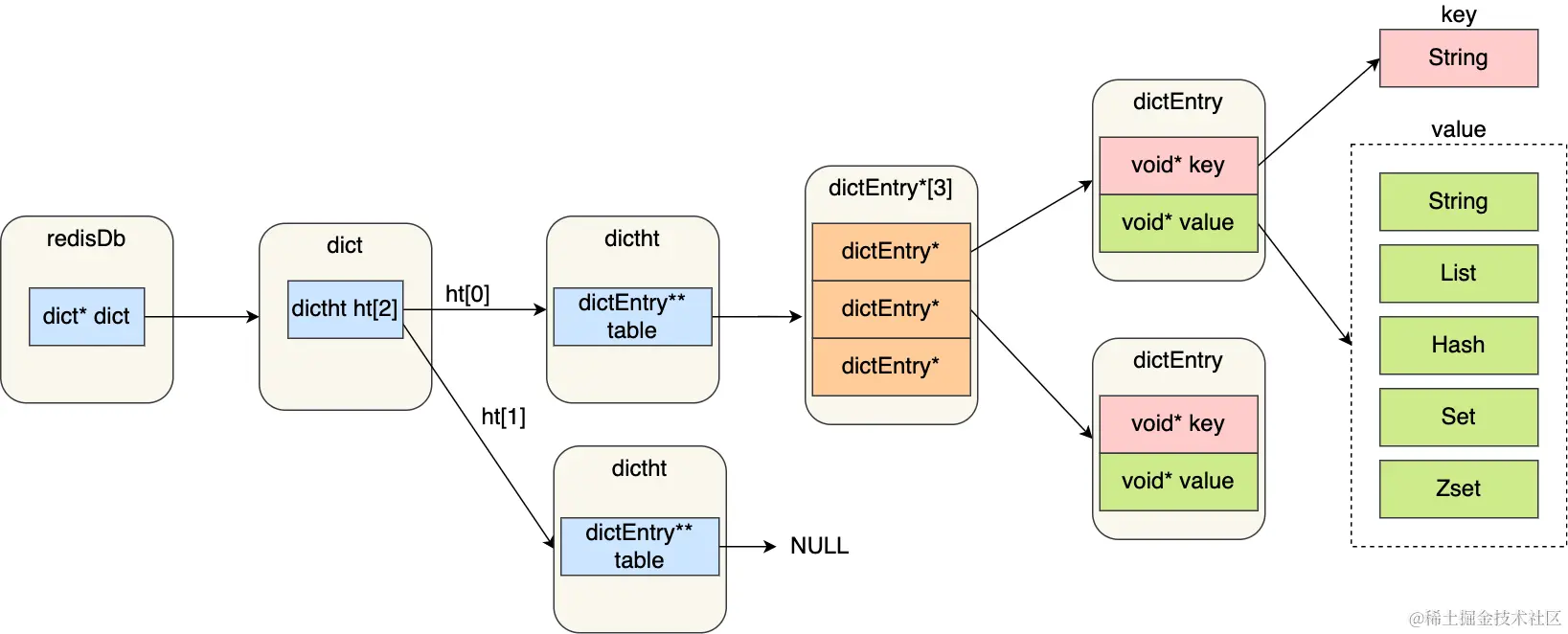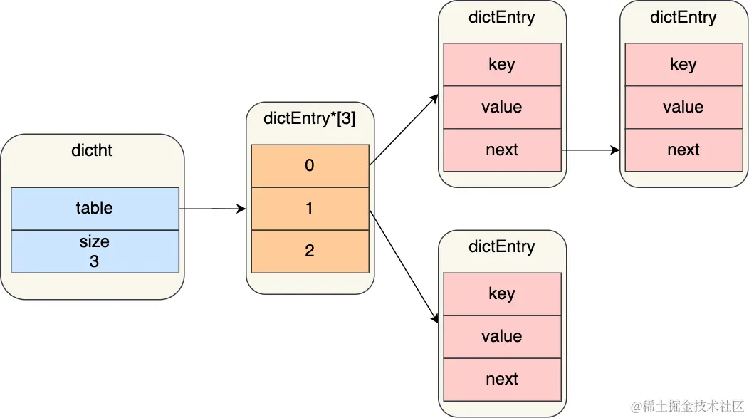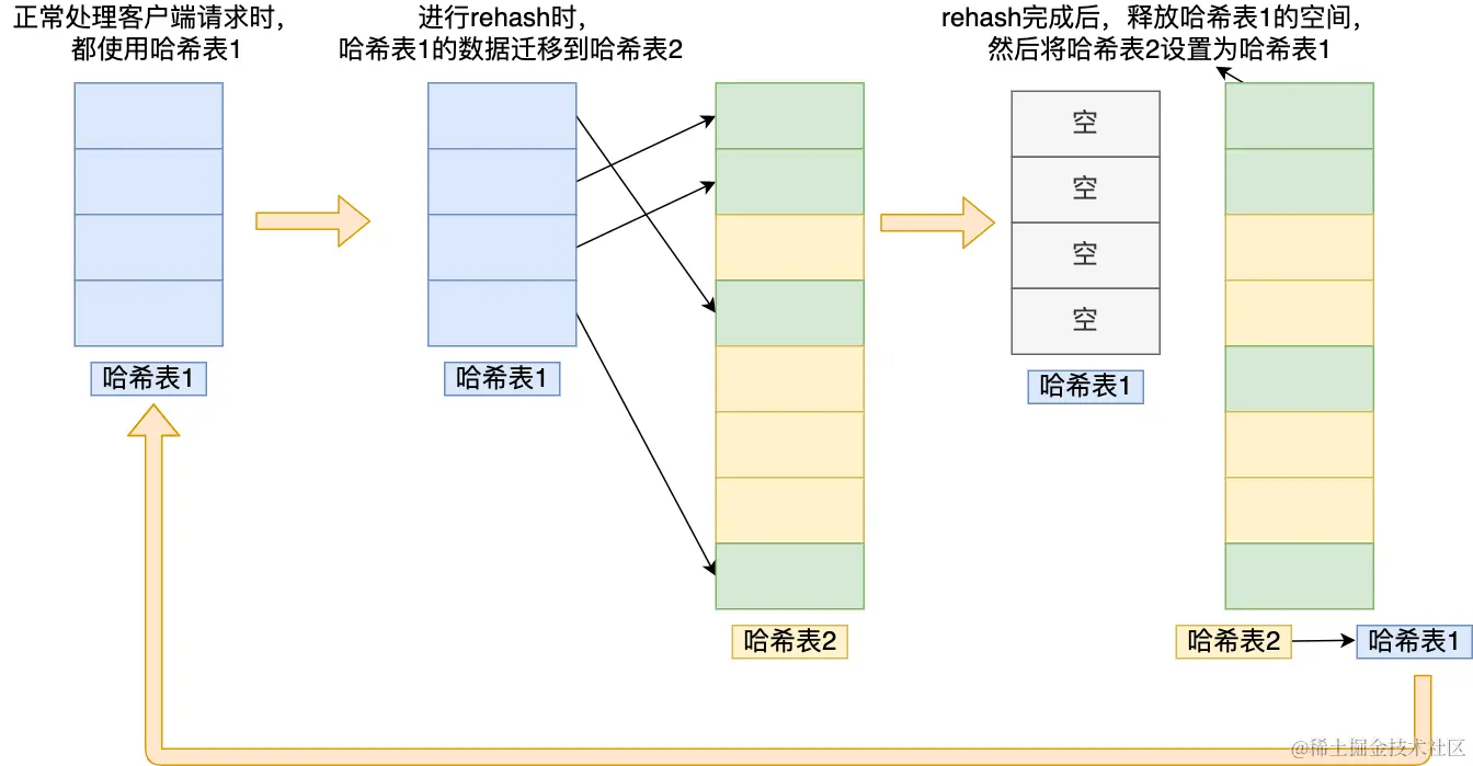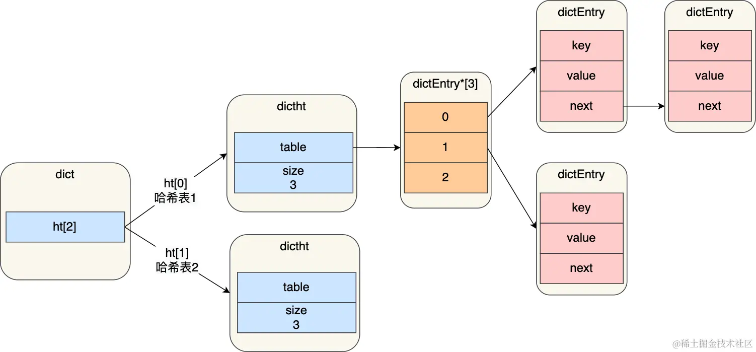 - Dict:不满足ZipList条件就使用哈希表。