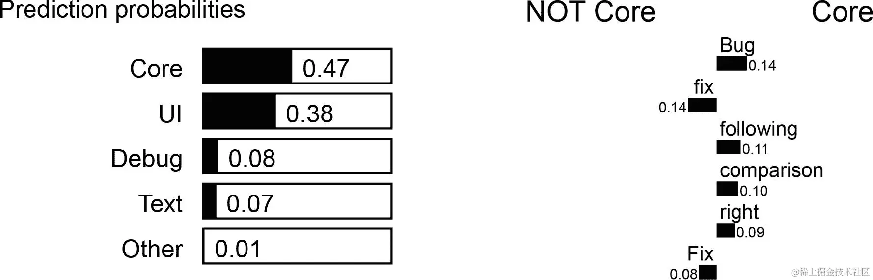 在预测阶段,模型接收到一个新的输入观察值(例如一个错误报告),并且像在训练阶段应用的方式一样转换文档以生成特征向量。新的特征向量被馈送到训练好的模型中以生成预测结果(例如一个错误的优先级)。通过这种方式,我们实现了一种预测标签的自动化方式。