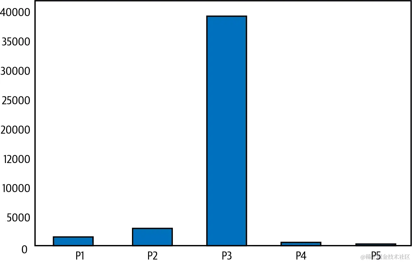 优先级为 P3 与其他优先级之间的巨大差异是构建监督学习模型的问题,并被称为类别不平衡。因为类别 P3 的观察数量比其他类别(P1、P2、P4 和 P5)大一个数量级,文本分类算法对 P3 错误的信息要比其他优先级(P1、P2、P4 和 P5)多得多:我们将看到优先级特征的类别不平衡如何影响我们的解决方案,并试图在蓝图中稍后克服这一问题。这与人类学习某些东西相似。如果你见过更多的某种结果的例子,你会更多“预测”相同的结果。