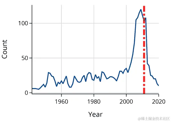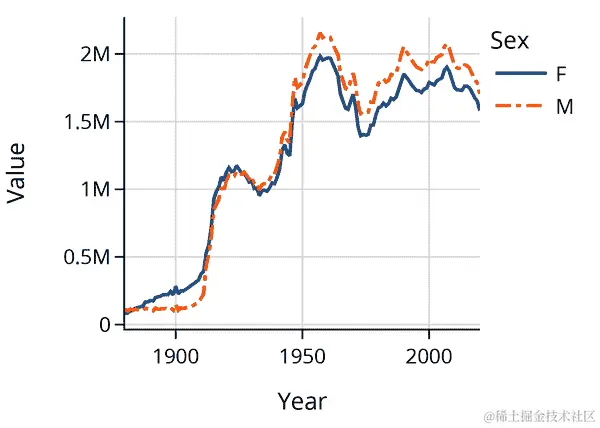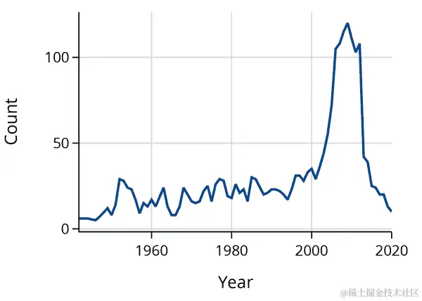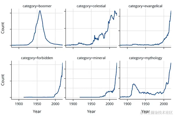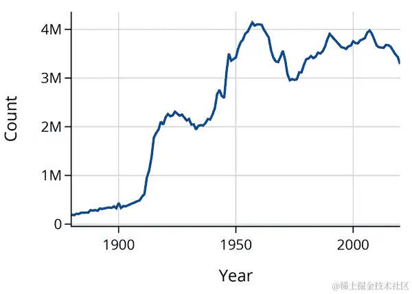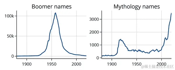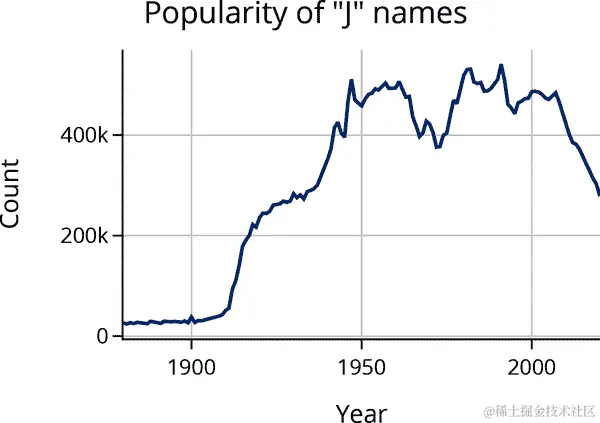 纽约时报 的文章指出,“J”开头的名字在 1970 年代和 80 年代很流行。图表也证实了这一点,并显示自 2000 年以来它们变得不那么流行。