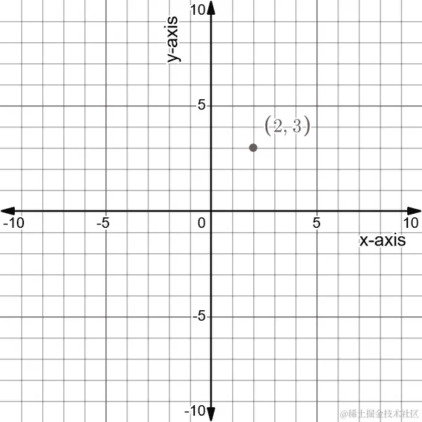 二维笛卡尔坐标系使用简单的括号来显示不同点的位置,遵循这个顺序: