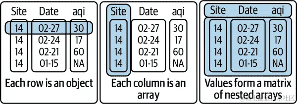每种介绍的格式,我们都描述了其结构模型。对数据集组织的基本理解有助于您发现质量问题,读取源文件中的错误,以及最佳处理和分析数据的方法。从长远来看,随着您继续发展数据科学技能,您将接触到其他形式的数据交换,我们期待这种考虑组织模型并通过一些简单案例动手实践的方法能为您服务良好。