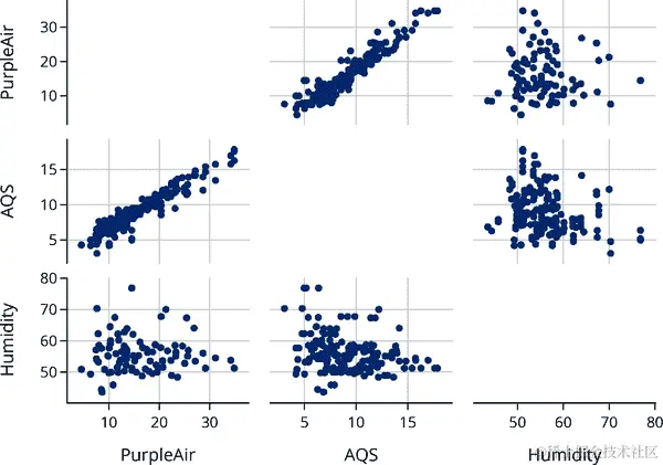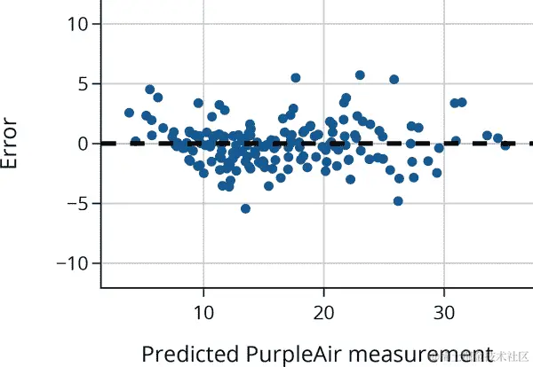 任何 PurpleAir 读数的变化都不是由 AQS 读数的变化引起的。相反,它们都反映了空气质量,而我们的模型捕捉了这两个设备之间的关系。通常情况下,术语预测被认为是因果关系,但在这里并非如此。相反,预测只是指我们对 PA 和 AQS 测量之间线性关联的使用。