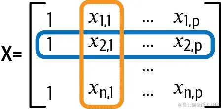 其中θ ∗是一个(p+1)×1列向量,X是一个n×(p+1)设计矩阵,ϵ由n个独立的随机变量组成,每个变量的期望值为 0,方差为σ2。在这个方程中,Y是一个随机变量向量,每个变量的期望值由设计矩阵确定,方差为σ2。也就是说,关于直线的变化是恒定的,即它不随x的变化而变化。