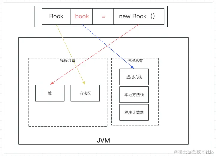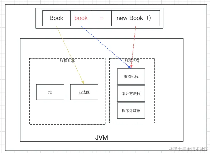 经过了上面的创建流程,Book对象在JVM运行时中的状态是怎样的呢?你可以看一下我给出的图示