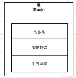 按照我们之前讲到的JVM对象协议,Book类对象存储在JVM里,总共由3个部分组成,分别是对象头、实例数据和对齐填充。