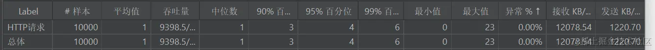 平均响应时间为1,吞吐量增加。考虑继续增加请求数测试服务器性能。