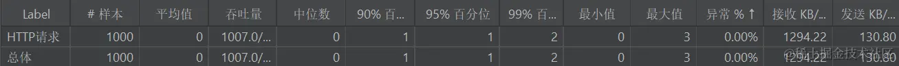 一般而言,性能测试中我们需要重点关注的数据有: #样本(本次测试发送多少个请求),平均值(单个 Request 的平均响应时间),Min 最小响应时间,Max 最大响应时间,异常率(错误请求数/请求总数)及吞吐量(默认情况下表示每秒完成的请求数)。