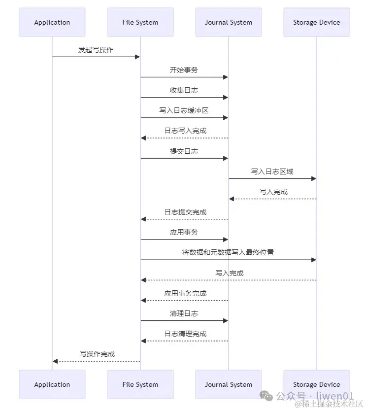 应用事务:将日志中的修改应用到文件系统,将数据和元数据写入最终位置