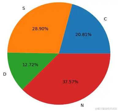 autopct:用于显示每个部分的百分比,格式由参数值决定。在本例中,它显示的是百分比的小数形式,保留两位小数。