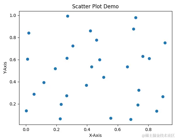 在下面的示例代码中,我们使用plt.scatter(x, y)函数创建了散点图。该函数接受两个参数:x和y坐标列表。然后,我们使用plt.title()、plt.xlabel()、plt.ylabel()函数为散点图添加了标题和轴标签。
