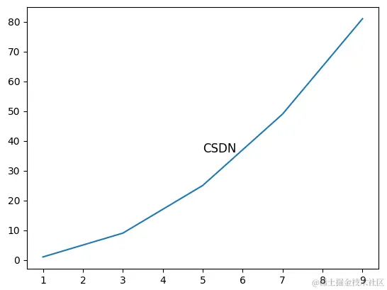 plt.text(5, 36, 'CSDN', fontsize = 12)