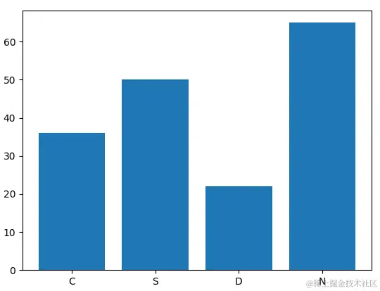 在下面的示例代码中,我们使用plt.bar()函数绘制了一个简单的柱状图,并传入了标签和相应的数值,图形中的每个柱子都对应一个标签和一个数值。